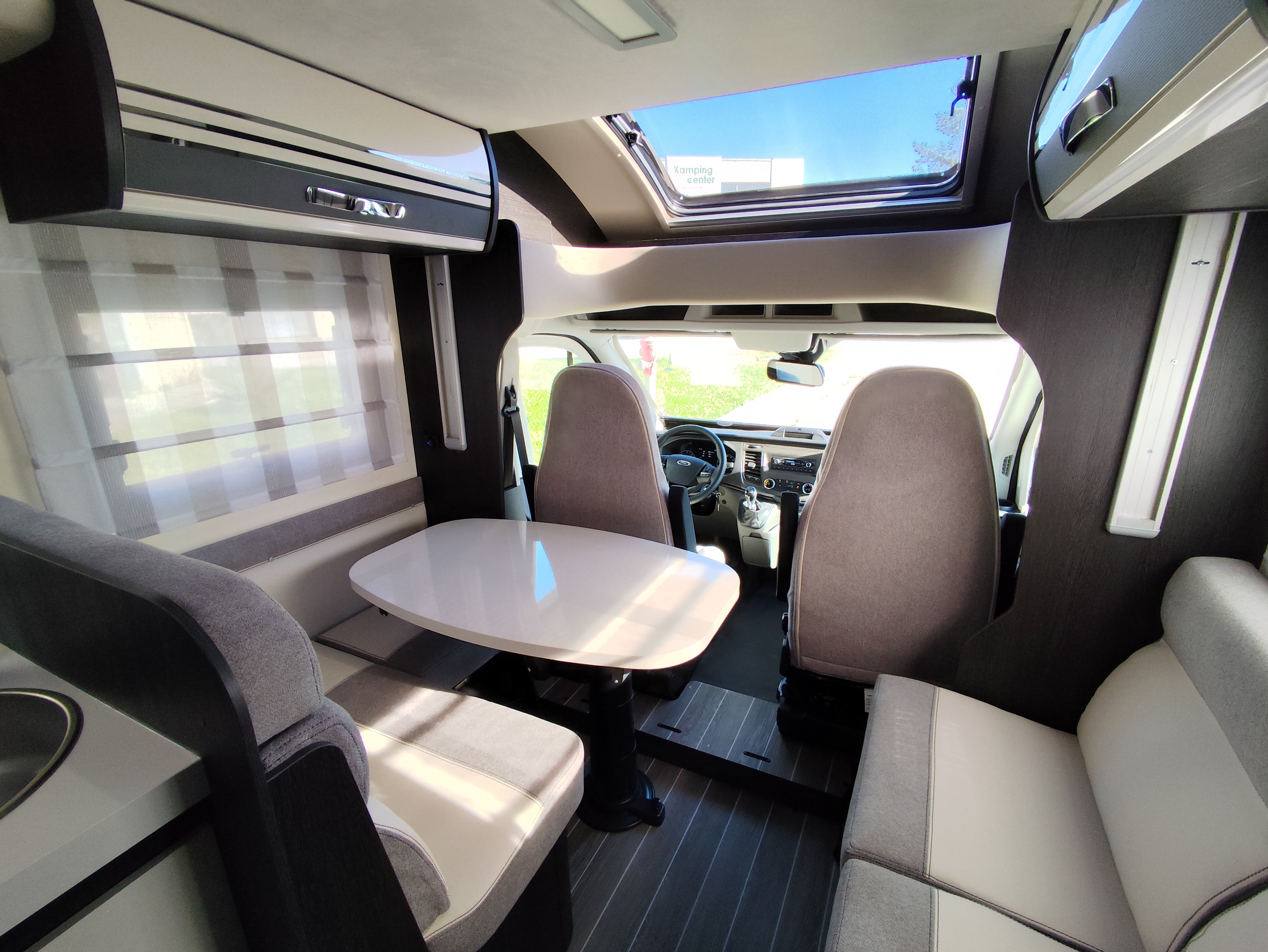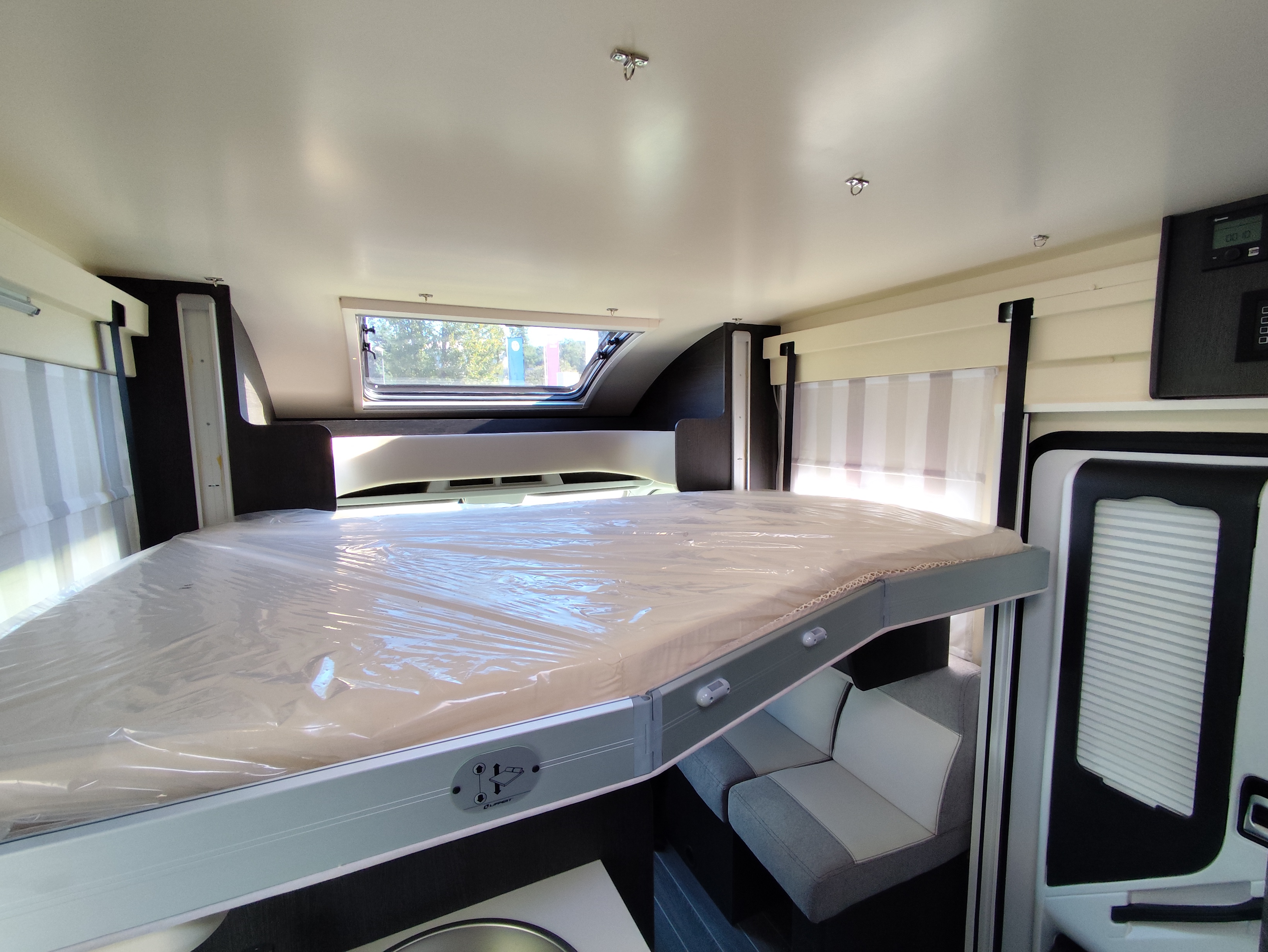 Sistem Traction Plus, kamero za vzvratno vožnjo, pliseji v kabini, širša vhodna vrata z oknom, sončna celica 120W, komarniki in zatemnitev na vseh oknih in vratih, hladilnik 148L (220V-12V-Plin) z ločenim zamrzovalnikom in predalom za steklenice, ogrevanje Truma Kombi 4 in električna prednja postelja.